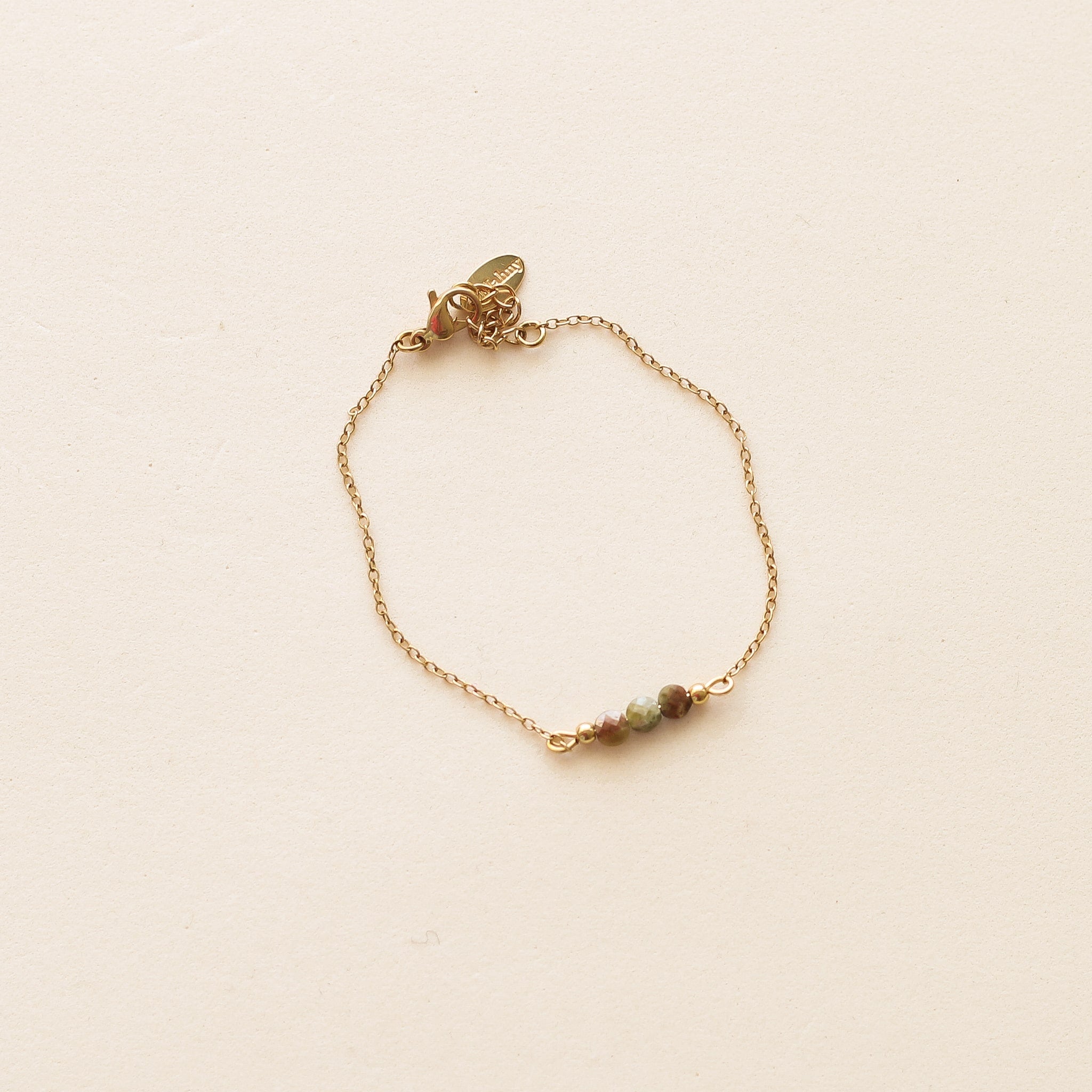 Ce bracelet doré pour femme met en valeur la tendance des bijoux en pierres naturelles. Orné de trois pierres de grenat, dont la couleur riche et profonde évoque le rouge intense d'un vin prestigieux, ce bijou apporte une touche de mystère et de passion. Le contraste saisissant entre l'éclat doré et le rouge sombre des grenats crée une esthétique captivante, idéale pour celles qui cherchent à enrichir leur tenue avec élégance et une pointe de couleur audacieuse. Ce bracelet est l'accessoire parfait pour rehausser n'importe quel ensemble avec sophistication.