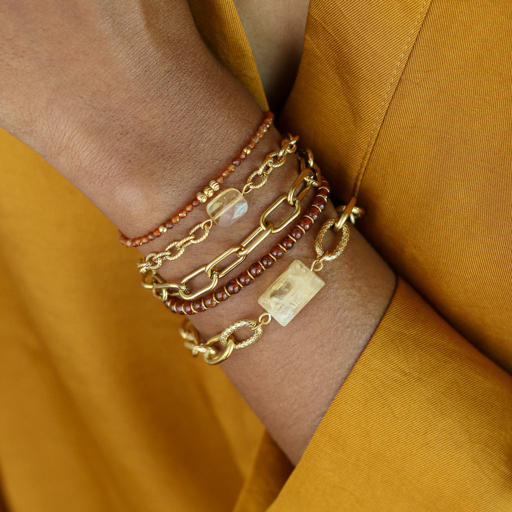 En Acier inoxydable et pierres naturelles, ce bracelet ne craint pas l'eau, la douche. Le bijou parfait pour vous suivre tous les jours sans inquiétude.