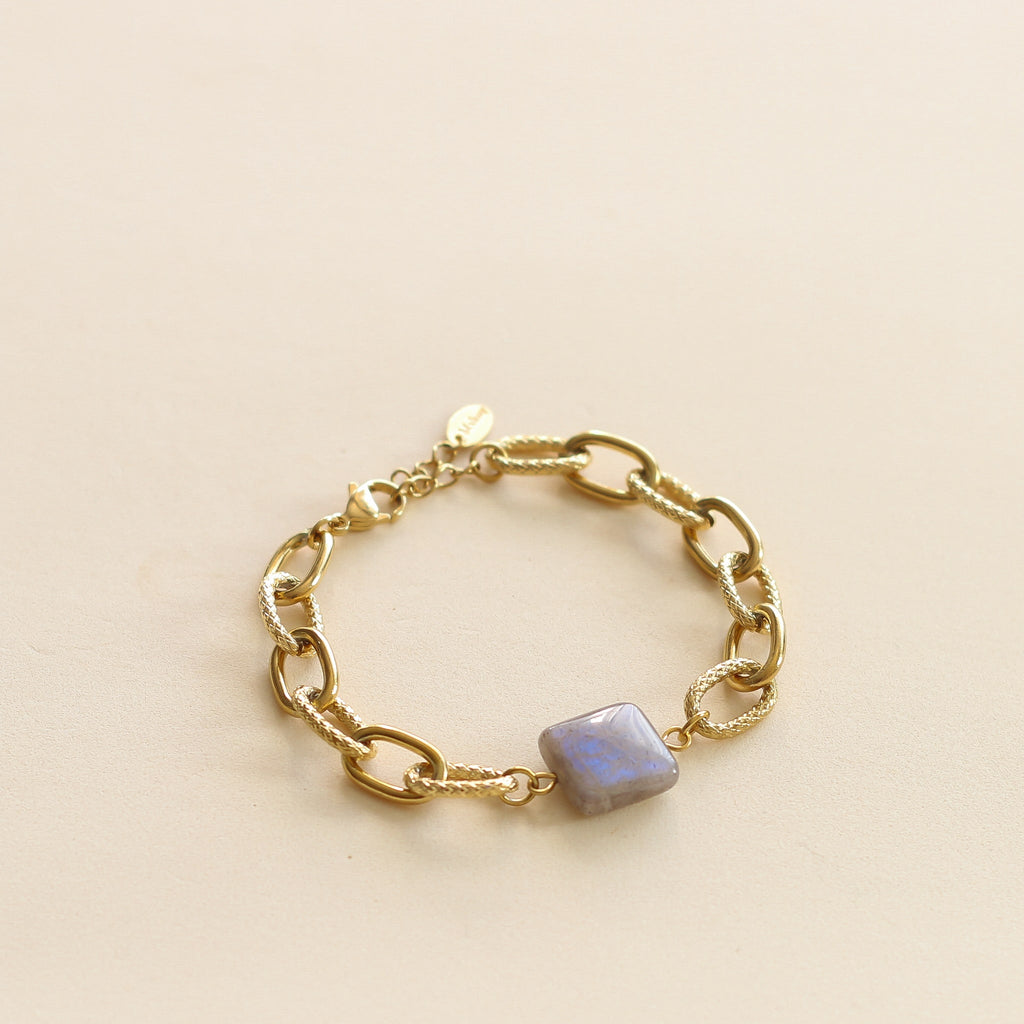 En Acier inoxydable et pierres naturelles, ce bracelet ne craint pas l'eau, la douche. Le bijou parfait pour vous suivre tous les jours sans inquiétude.