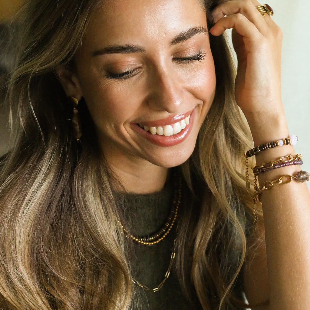 En Acier inoxydable et pierres naturelles, ce bracelet ne craint pas l'eau, la douche. Le bijou parfait pour vous suivre tous les jours sans inquiétude.