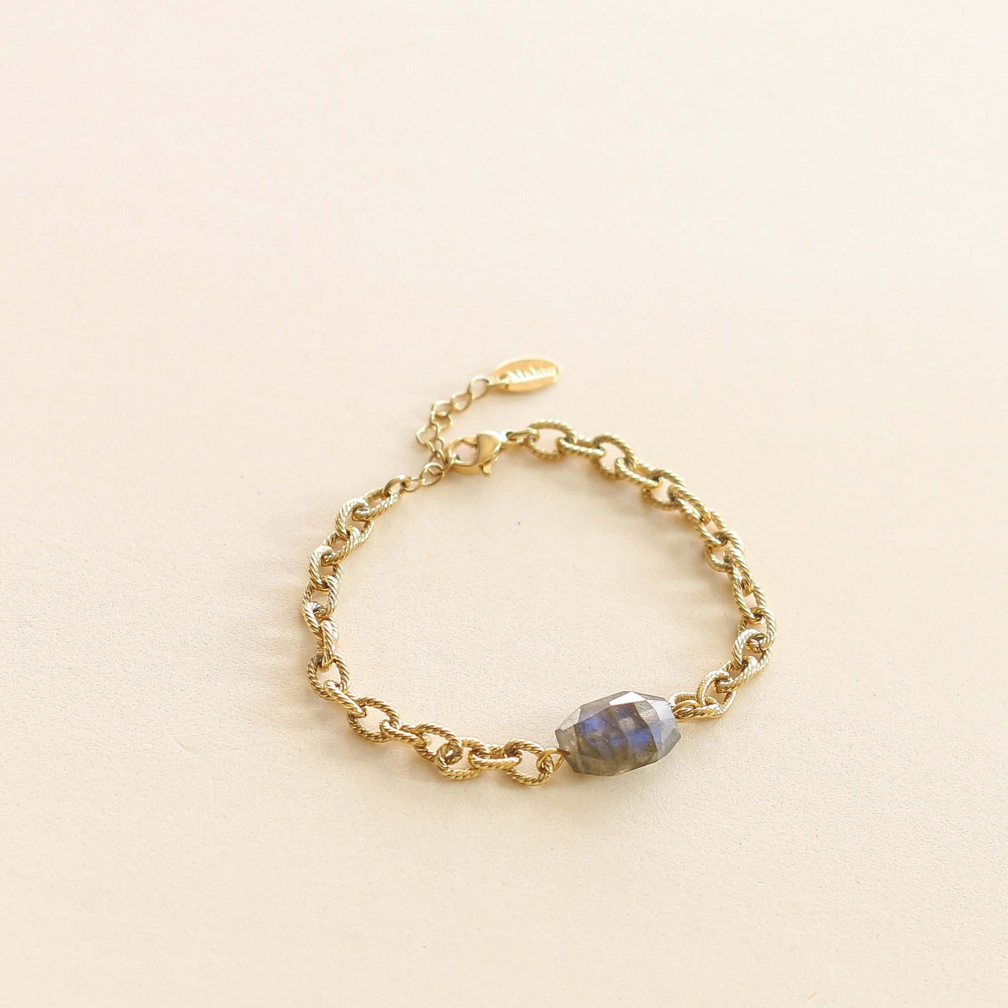 En Acier inoxydable et pierres naturelles, ce bracelet ne craint pas l'eau, la douche. Le bijou parfait pour vous suivre tous les jours sans inquiétude.