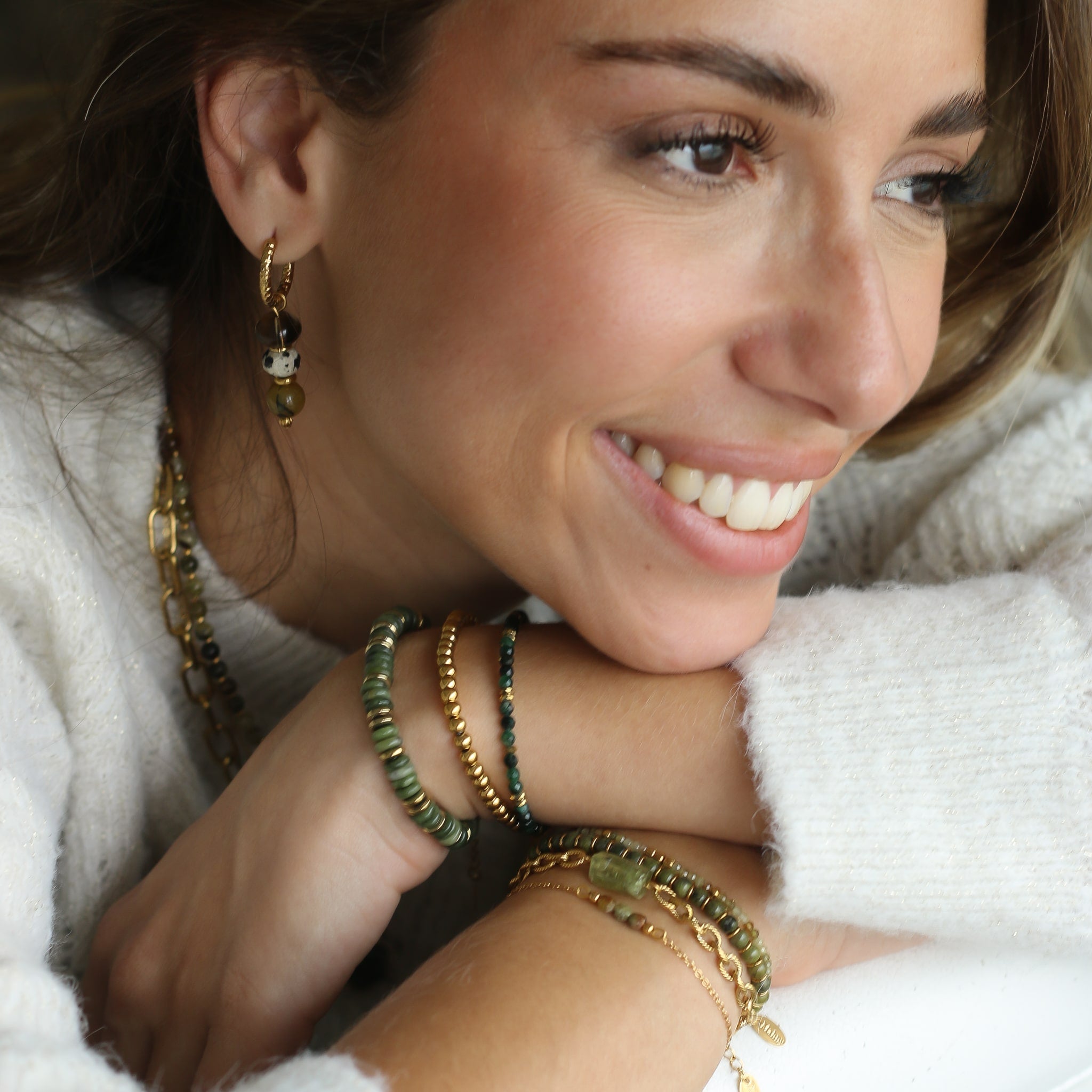 En Acier inoxydable et pierres naturelles, ce bracelet ne craint pas l'eau, la douche. Le bijou parfait pour vous suivre tous les jours sans inquiétude.