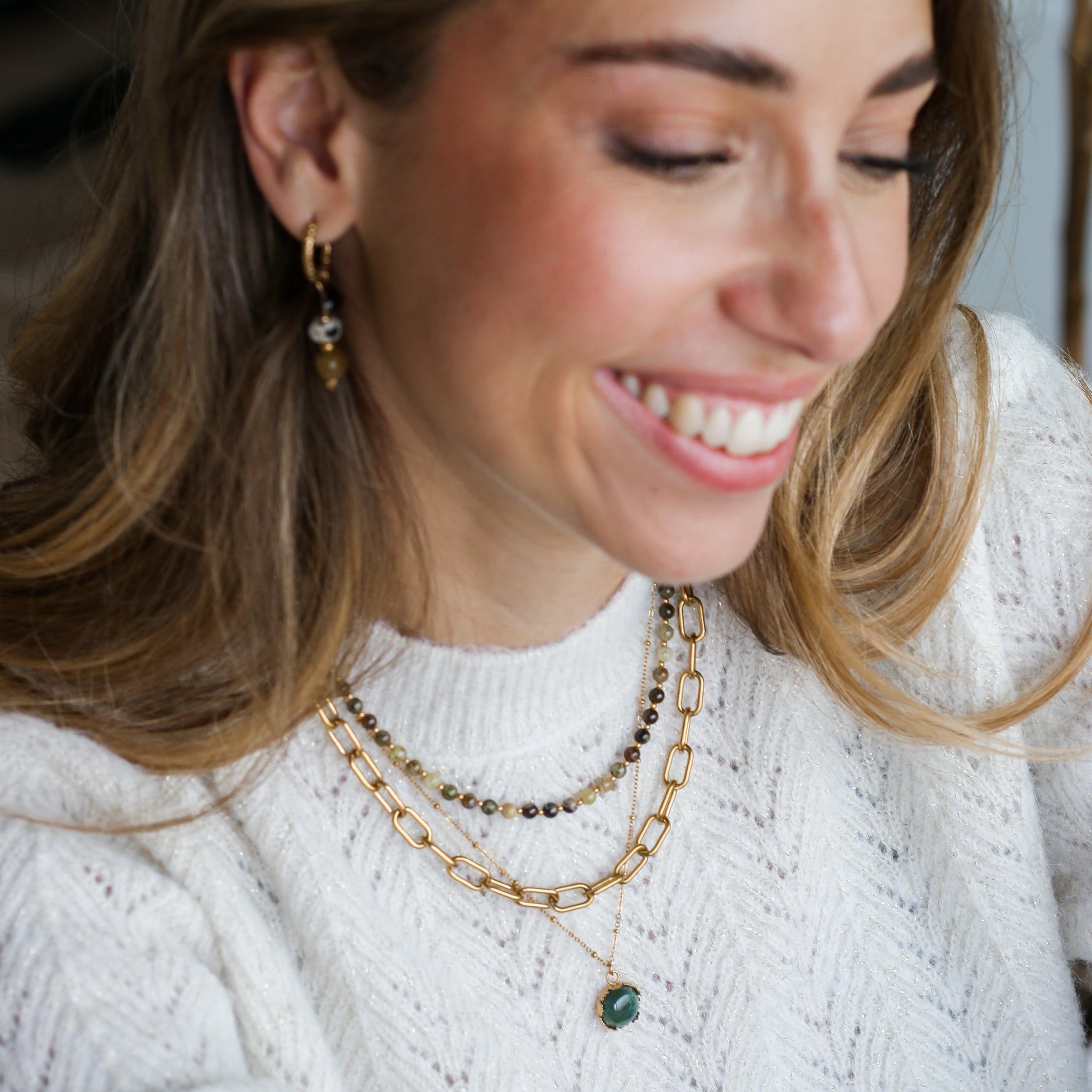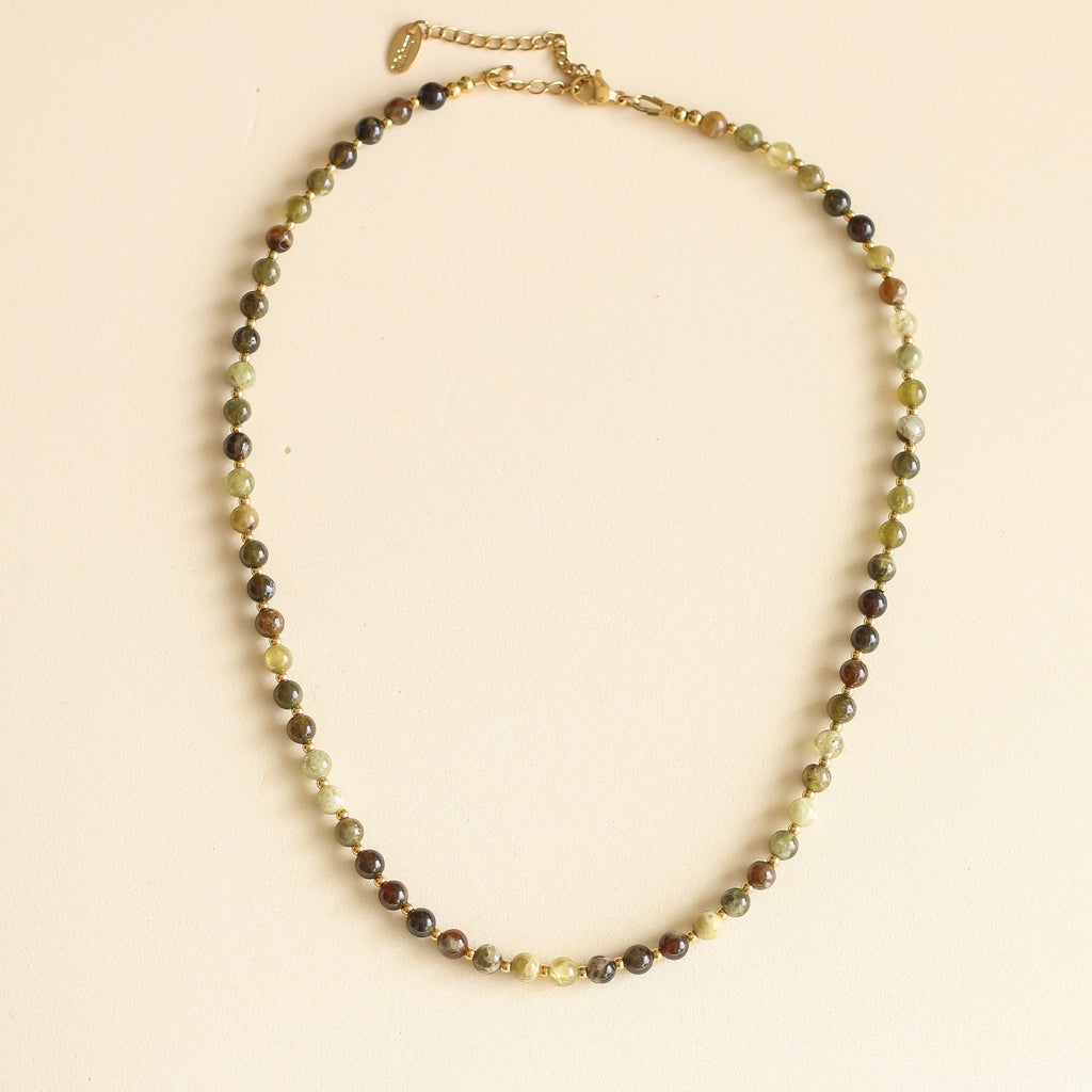 En Acier inoxydable et pierres fines naturelles, ce collier ne craint pas l'eau, la douche. Le bijou parfait pour vous suivre tous les jours sans inquiétude.