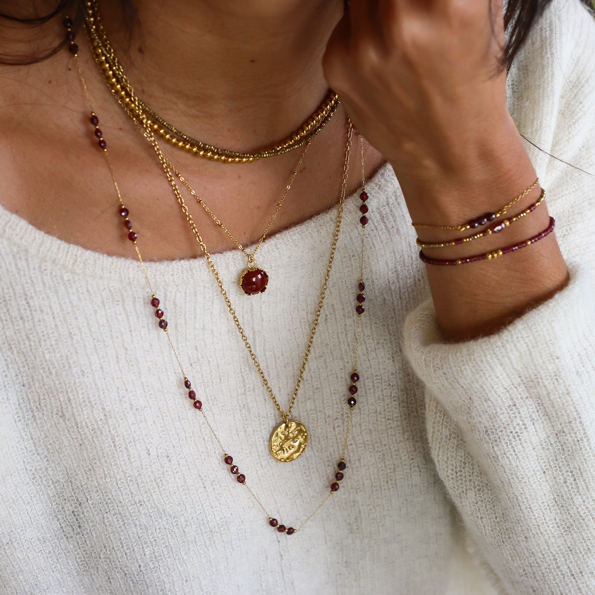 Collier Cornaline foncée dentelée